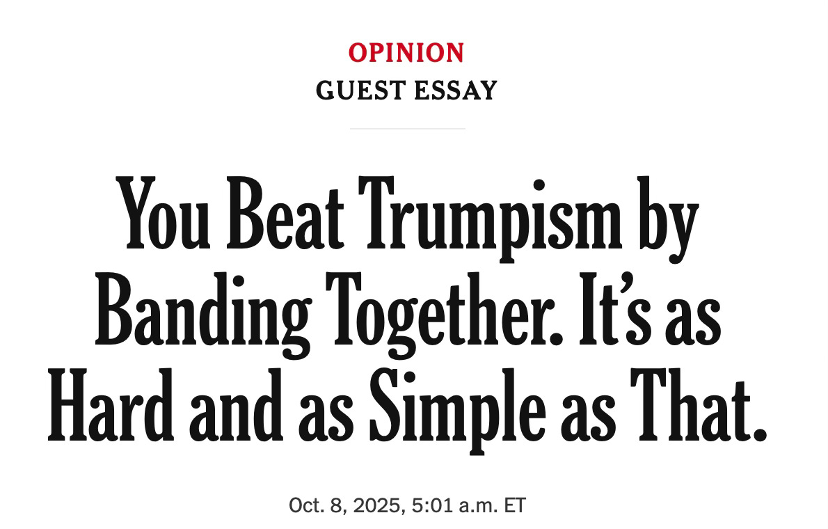 The alternative to this, as Farrell argues, and as should be obvious, is “solidarity among groups who disagree ferociously on many questions, but who agree on the need to keep America democratic and rebuild institutions and social connections to make democracy more robust.”